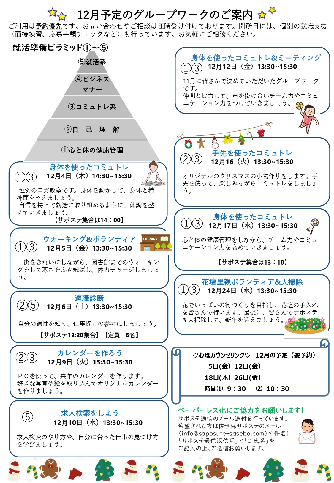 佐世保サポステの月間カレンダーです。各種サポートプログラムの開催予定をご確認いただけます。